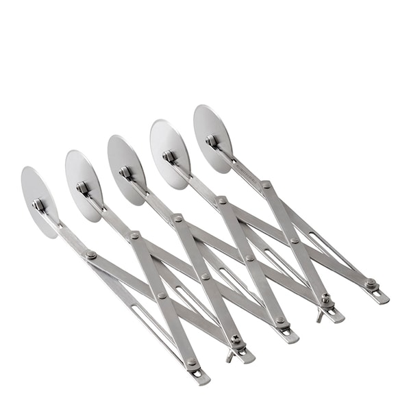 Blomsterbergs Degdelare med 5 hjul i stål är ett praktiskt verktyg som gör det enkelt att skära degen i perfekta storlekar. De fem rostfria stålhjulen, var och en med en diameter på 5,7 cm, har ett justerbart skäravstånd från 1 cm till 11,5 cm. Detta gör delaren lika bra för hemgjord pasta som fettuccine, som för bakverk och kakor som kräver precisa snitt. Rengör med varmt vatten och tvål före första användning, och handdisk rekommenderas för att säkerställa långvarig användning.