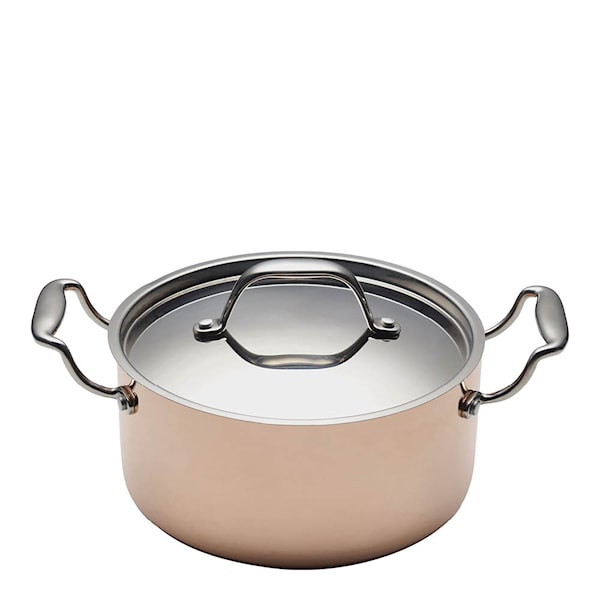 Denna 3-liters gryta från Blomsterbergs är tillverkad av koppar och rostfritt stål, med en aluminiumkärna som säkerställer jämn och effektiv värmefördelning. Grytan har en klassisk design med ett elegant handtag i rostfritt stål och fungerar på alla typer av spishällar, inklusive induktion. Handdisk med varmt vatten, mild tvål och en mjuk borste rekommenderas för att bevara kvaliteten.