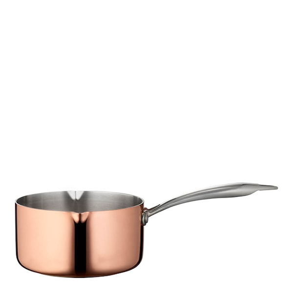 Denna 1,5-liters kopparkastrull från Blomsterbergs är ett mångsidigt köksredskap med en tidlös design. Den är tillverkad med en insida av rostfritt stål, en aluminiumkärna för effektiv värmefördelning och ett yttre lager av koppar som ger en vacker, blank yta.