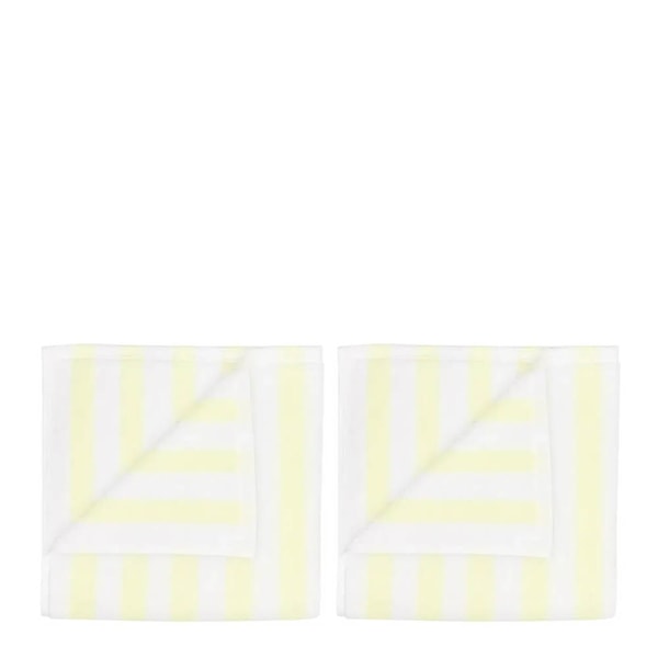Blomus Arto gästhandduk 50x30 cm 2-pack i vitt och gult med breda ränder kombinerar funktion med ett ljust och uttrycksfullt formspråk. Det randiga mönstret tillför liv, medan färgerna harmonierar med klassiska badrumsmiljöer.