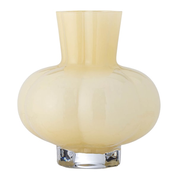 Bloomingville Alyssa vas kombinerar modern elegans med hantverkstradition. Den munblåsta designen i glas har en blank yta i mjuka gula toner som skapar en varm och inbjudande atmosfär. Med en höjd på 23,5 cm och en diameter på 22 cm passar vasen lika bra för färska blommor som som ett dekorativt inslag i sig själv.