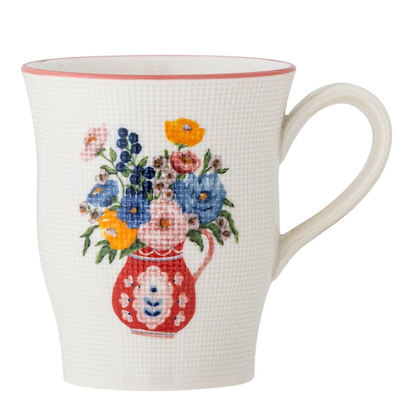 Bloomingvilles Dorothy mugg är ett uttryck för nordisk elegans med ett konstnärligt inslag. Tillverkad i stengods och dekorerad med en karaktäristisk struktur och ett blommotiv i rött, blått och gult som ger den en känsla av handgjort broderi. Den strukturerade ytan reflekterar ljuset på ett subtilt sätt och skapar ett levande spel mellan färger och form.