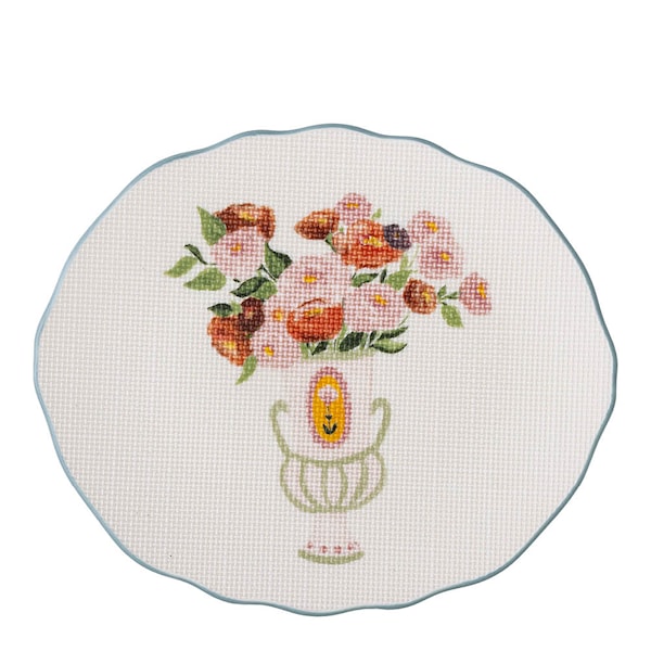 Bloomingvilles Dorothy-tallrik är ett konstnärligt inslag i dukningen, tillverkad i stengods med ett blommotiv i nyanser av rött, rosa och grönt. Den reliefartade ytan påminner om broderi och ger tallriken en elegant textur som för tankarna till tidlöst hantverk.