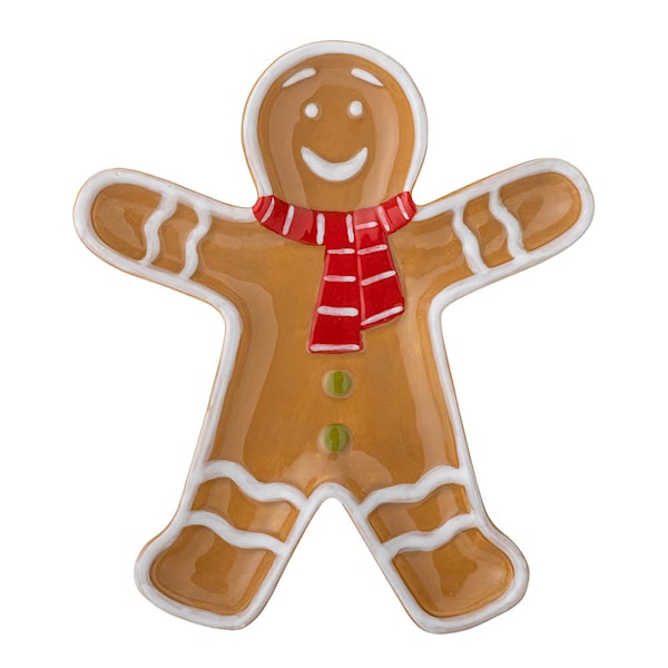 Ginnie serveringsfat från Bloomingville sprider julkänsla i miniformat. Tillverkat i keramik och format som en pepparkaksgubbe – en fin och festlig detalj på vinterbordet.