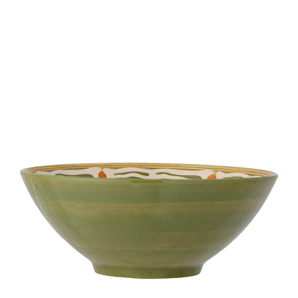 Heikki skål på 26,5 cm från Bloomingville är en vacker skål med ett handmålat mönster i ljusa och gröna nyanser. Det fina hantverket gör skålen unik och ger en ombonad och rustik känsla till dukningen. Varje fat kommer att vara unikt då varje penseldrag sätter en personlig prägel och skapar en variation i designen.