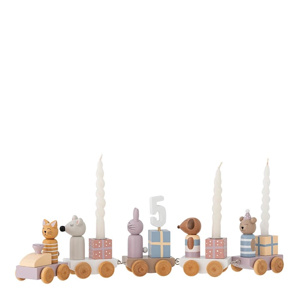 Tåget har plats för tre ljus och kommer med siffror från 0 till 9 för att kunna återanvändas vid varje födelsedag.