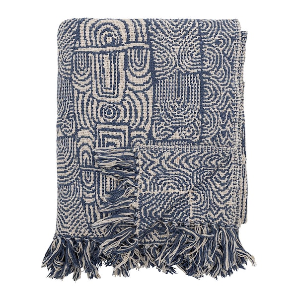 Bresso-pläden från Bloomingville är tillverkad i ett mjukt tyg med ett klassiskt blåvitt mönster. Pläden har fransar längs kanterna som tillför struktur och en mysig känsla.
