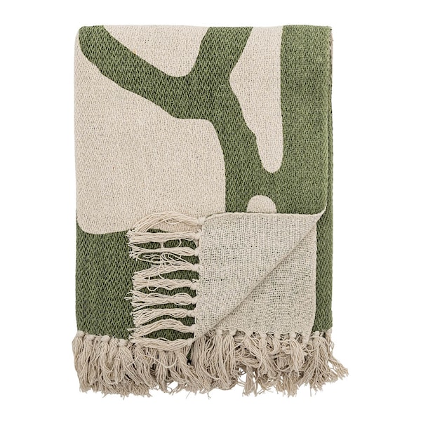 Dalmine-pläden från Bloomingville är ett dekorativt och mjukt inslag i hemmet. Det vävda mönstret i grönt och vitt skapar ett fräscht men varmt uttryck, medan de ljusa fransarna ger pläden en avslappnad karaktär.