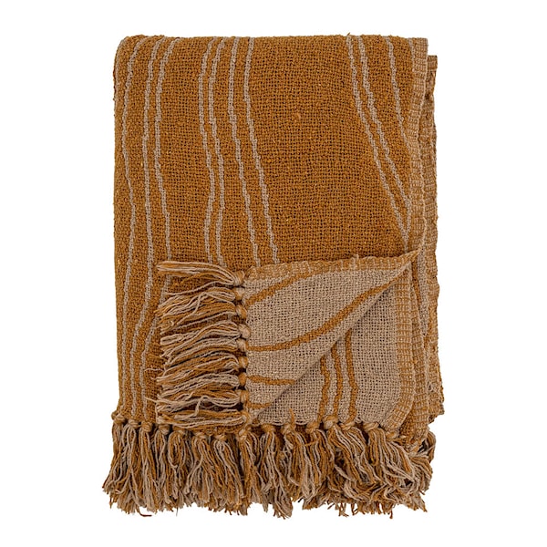 Ginna pläd från Bloomingville har ett vågformat mönster i varma bruna nyanser och en spegelvänd baksida, vilket ger ett harmoniskt och mångsidigt uttryck. Den mjuka strukturen gör den till ett perfekt komplement i såväl vardagsrummet som på uteplatsen.