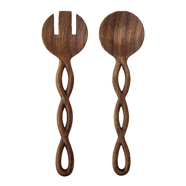 Setet består av en salladssked og salladsgaffel, båda 24 cm långa. De passar utmärkt för servering av sallad, pasta eller andra större rätter. Rengörs för hand och underhålls med olja för att bevara träets skönhet.