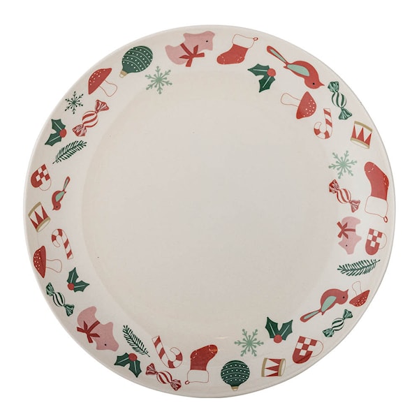 Yule serveringsfat från Bloomingville är en rund stengodstallrik på 28 cm, dekorerad med vackra julmotiv som ger en varm känsla till det dukade bordet.