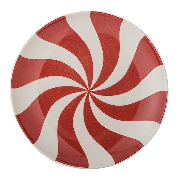 Yule-tallriken från Bloomingville är en 23 cm lunchtallrik i stengods med lekfulla röda och vita spiraler som skapar en glad och stämningsfull känsla.