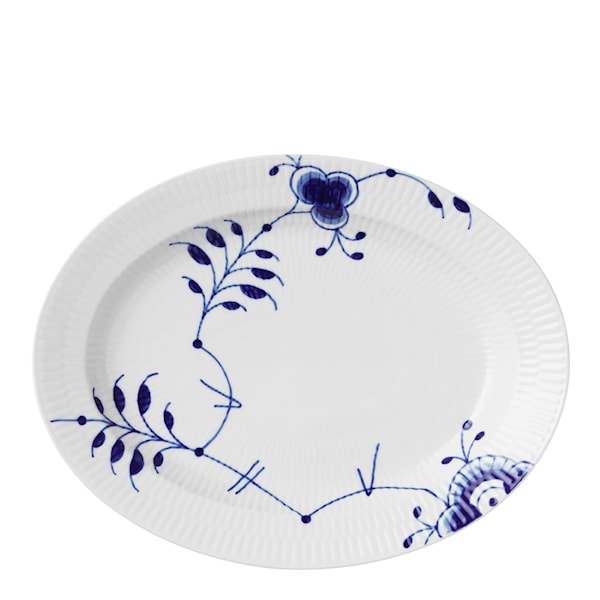 Den välkända Blue Fluted Plain designen från Royal Copenhagen, tolkas i serien Blue Fluted Mega på ett nytt och överraskande sätt. Serien skapades av den unga designstudenten Karen Kjældgård-Larsen år 2000. Blue Fluted Mega omfattade ursprungligen 8 olika mönster. Varje del i servisen har sin egen unika handmålade design. På baksidan av din mega-produkt hittar du ett nummer. Numret anger mönstret på den specifika delen.