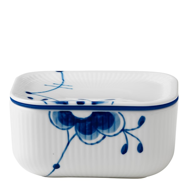 Den välkända Blue Fluted Plain designen från Royal Copenhagen, tolkas i serien Blue Fluted Mega på ett nytt och överraskande sätt. Serien skapades av den unga designstudenten Karen Kjældgård-Larsen år 2000. Blue Fluted Mega omfattade ursprungligen 8 olika mönster. Varje del i servisen har sin egen unika handmålade design. På baksidan av din mega-produkt hittar du ett nummer. Numret anger mönstret på den specifika delen.