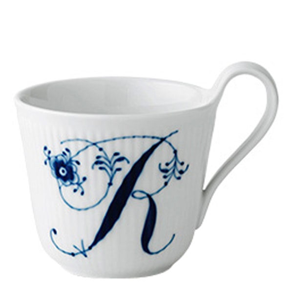 Blue Fluted Pl Alphabet Mugg 33 cl från Royal Copenhagen med handmålad, dekorativ bokstav på framsidan. Perfekt för fika i trädgården eller till frukosten. Matcha gärna med andra delar ur serien för att skapa en vacker kombination.