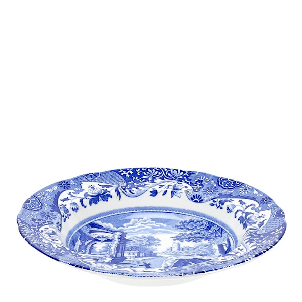 Denna djupa tallrik från Spodes Blue Italian-kollektion tillför klassisk charm till både vardag och fest. Med sin generösa diameter på 23 cm är den perfekt för allt från soppor och pastarätter till grytor.