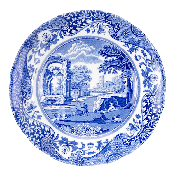 Blue Italian assiett på 15 cm är den perfekta följeslagaren till eftermiddagsteet, förrätten eller som en liten desserttallrik. Den detaljrika dekoren hämtar inspiration från både Orienten och det italienska landskapet, och tillför en tidlös och sofistikerad känsla till varje dukning.