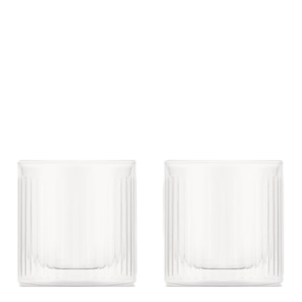 Möt DOURO BAR Whisky- och Gin & Tonic-glasen. Dessa randiga, dubbelväggade glas tjänar två huvudsyften: skönhet och praktisk användning. Varje glas försäkrar dig om att dina drycker förblir smakfulla och redo för påfyllning.