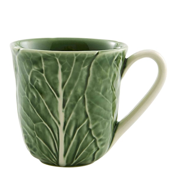 Cabbage krus 50 cl från Bordallo Pinheiro är en kärleksfull tolkning av naturen – i keramikform. Den gröna glaseringen och kålbladsmönstret ger både karaktär och charm. Perfekt för te, kaffe eller varm choklad. Tål mikrovågsugn och diskmaskin.