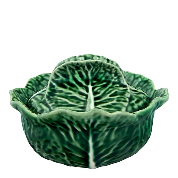 Bordallo Pinheiro Cabbage skål med lock – 15,3 cm. Ett grönt keramikstycke inspirerat av kålbladets naturliga form. Passar lika bra till servering som till dekoration. Tål både mikrovågsugn och diskmaskin.