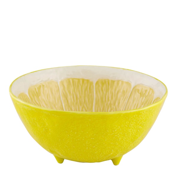 Gör varje måltid till en fest för ögat med denna citronformade serveringsskål från Bordallo Pinheiro. Skålen är tillverkad i stengods och mäter 25 cm i diameter – perfekt för frukt, sallad eller tillbehör. Med sin naturtrogna form och strålande gula glasyr för den tankarna till solmogna citroner och medelhavets friska dofter.