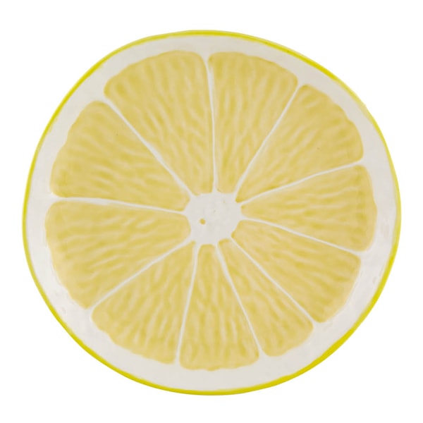Med sin fruktiga design och uppiggande gula färg ger denna 22 cm stora assiett från Bordallo Pinheiro en somrig känsla året om. Den är gjord i glaserat stengods och föreställer en perfekt skuren citronskiva – så naturtrogen att man nästan kan känna doften.