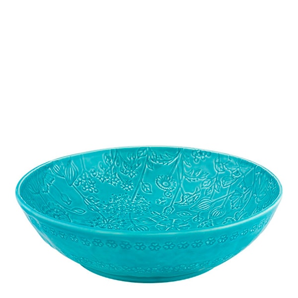 Flora Skål 30,5 cm Blå ur Bordallo Pinheiros fina serie Flora, en stor härlig skål med samma vackra mönster som övriga serien. Perfekt till härligt krispida sallader. Tål både maskindisk och mikrovågsugn.