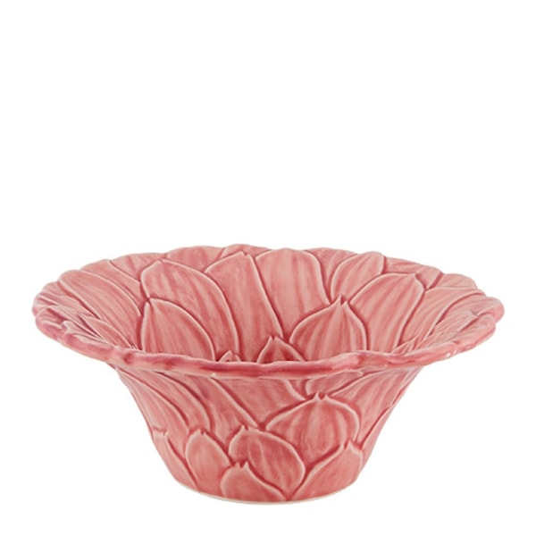Maria Flor-skålen från Bordallo Pinheiro är en hyllning till sommarens vackra blommor. Inspirerad av dahlia, prästkrage, cosmos och stockros för med sig denna keramiska skål naturens skönhet direkt till bordet. Med en kapacitet på 40 cl är den idealisk för servering av allt från frukostflingor till desserter och smårätter.