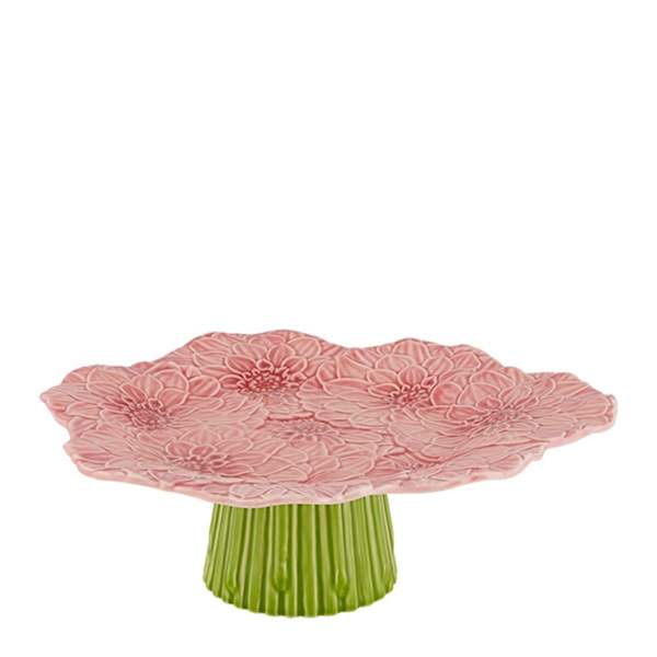 Maria Flor tårtfat på fot i dahlia röd/grön från Bordallo Pinheiro kombinerar vacker estetik med funktionell design. Serien är inspirerad av blommor som cosmos, prästkrage, dahlia och stockros och väcker associationer till varma sommardagar – perfekt för både en dukning i trädgården och en inbjudande atmosfär inomhus. Servisen bygger på originalskisser från Bordallo Pinheiro och har en modern, uttrycksfull känsla.