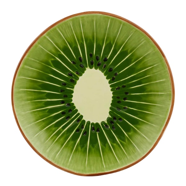 Tropical Fruits tallrik 22 cm från Bordallo Pinheiro – en liten, grön keramikassiett med kiwiform och detaljerad glasyr. Perfekt för förrätter, kakor eller som färgstark dekoration.