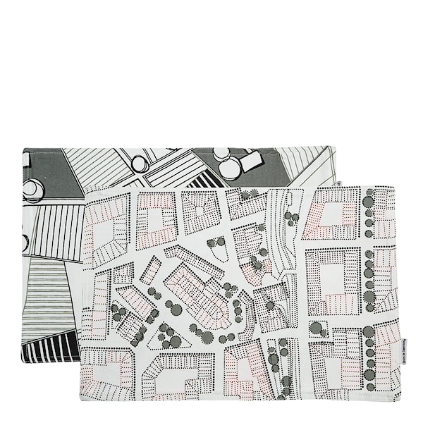 Bordstablett med två olika motiv ur serien Sweden from Above; det röda motivet City på ena sidan och det gråa Countryside på den andra.