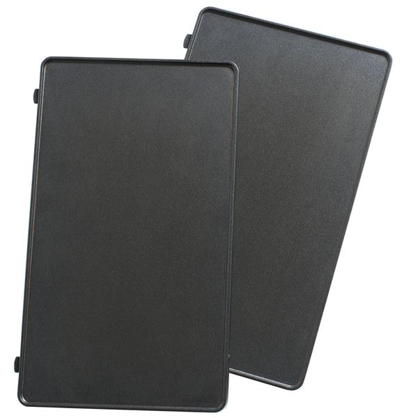 De robusta plattorna har en effektiv non-stick-beläggning som förhindrar att maten fastnar, vilket ger ett fint resultat varje gång och gör rengöringen lättare. Efter användning kan plattorna enkelt tas loss och diskas i diskmaskin. För praktisk förvaring levereras de i individuella boxar som hjälper dig att hålla ordning och spara plats i köket.