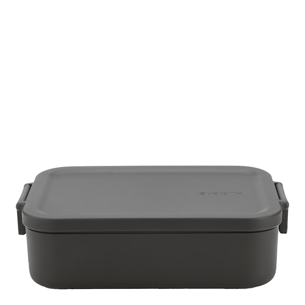 Brabantia Make & Take matlåda i mörkgrått, storlek Medium, är en mångsidig och pålitlig lunchlåda för dig som vill ha en lufttät förvaring av din mat, oavsett om du är på språng eller hemma. Matlådan rymmer 1,1 liter – perfekt för smörgåsar eller wraps.