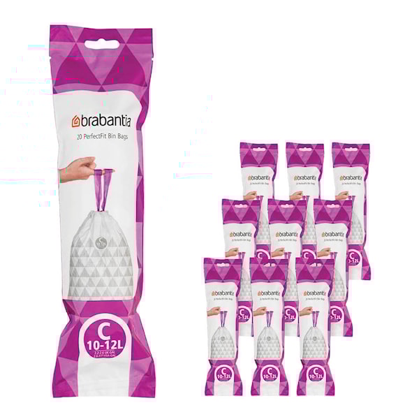 Brabantia PerfectFit avfallspåsar 10–12 L 200-pack kod C vit är framtagna för exakt passform i Brabantia avfallshinkar och möjliggör en hygienisk och effektiv avfallshantering. Den anpassade designen säkerställer att påsen sitter korrekt i behållaren.