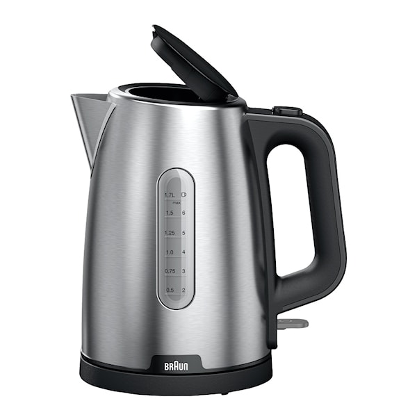 Den breda öppningen framtill gör påfyllning från kranen enkel och mer direkt, och med automatisk avstängning stänger vattenkokaren av sig när önskad temperatur har uppnåtts, när den är tom eller när den tas bort från basen. Extra stabilitet gör den motståndskraftig mot upp till 15 graders lutning, vilket ger dig trygghet och säkerhet vid användning. Med Brauns Purshine vattenkokare WK1500.BK kan du njuta av enkelhet, snabbhet och tillförlitlighet varje morgon.