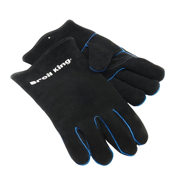Broil King Grillhandskar 2-pack är tillverkade i kraftigt, svart läder och fodrade för extra komfort. De är utformade för att tåla höga temperaturer och ger ett stabilt grepp när du lyfter heta grillpannor, formar eller redskap direkt från grillgallret.