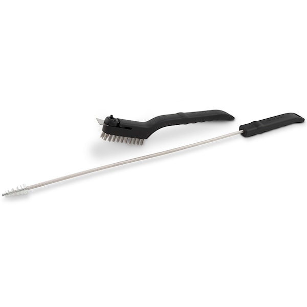 Setet innehåller en venturiborste för luftflödet, en skrapborste för brännarens utsida samt en nål och borste i rostfritt stål för små öppningar. Alla delar är tillverkade för att tåla regelbunden användning och göra rengöringen smidigare.