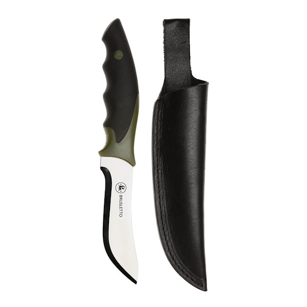 Brusletto Skinner 22,5 cm med knivslida är en lätt och exakt jaktkniv för flåning av storvilt. Med rätsslipat blad i härdat rostfritt stål och ett ergonomiskt handtag i svart/grönt Thermoflex får du kontroll i varje snitt.