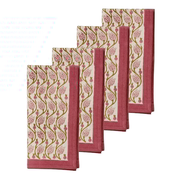 En uppsättning vackra bomullsservetter i från Bungalows serie Lotus. Duka upp bordet och ge det en extra touch med dessa underbara servetter. De är tillverkade i 100% bomull och ett mer hållbart alternativ för både hem och miljö.