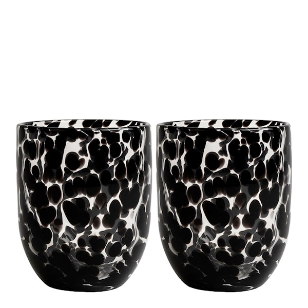 Messy glas, 30 cl, i 2-pack, från ByOn är som läckra karameller i tjockt glas. Varje glas är unikt, handgjort och handblåst med ett lekfullt och stökigt mönster. Använd dem för att servera drinkar, juice, mjölk eller kaffe. Med ett värmeljus blir de en perfekt ljuskälla och de kan även pigga upp badrummet som underbara tandborstglas med extra allt. På grund av att de är handgjorda kan det förekomma färg- och strukturskillnader mellan glasen. De är diskmaskinssäkra och designade av Byon Studio. Levereras i 2-pack i en Byon-box.