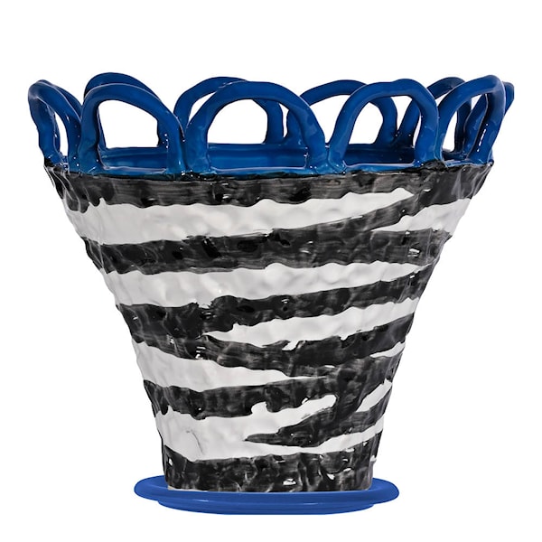 Patty S är en karismatisk kruka med stark personlighet, där konst möter funktion i ett djärvt uttryck. Formgiven av Emma Widell för Byon och inspirerad av hennes signaturmönster, ger Patty inredningen en konstnärlig edge. Det randiga motivet tillsammans med den livliga glasyren ger krukan en kraftfull visuell närvaro.