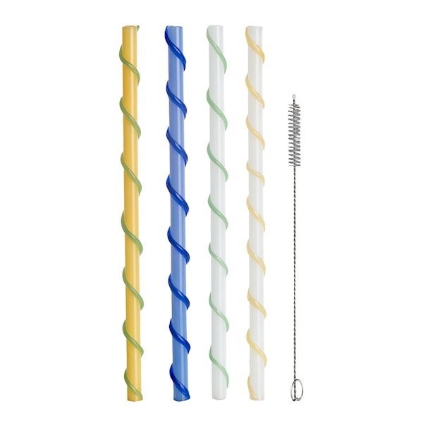 Straw Celebrate sugrör från BYON kombinerar praktisk funktion med dekorativ design. Dessa långa sugrör i handgjort glas finns i fyra vackra pastelltoner – smörgult, vitt, blått och grönt – som tillför en lekfull och elegant touch till din dryckesupplevelse.
