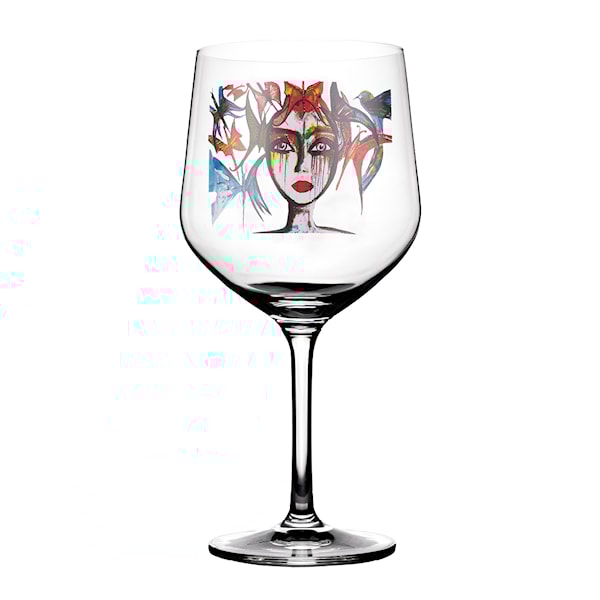 Varje glas är handdekorerat med Gynnings karakteristiska konstmotiv, vilket gör varje exemplar unikt. Kombinationen av klarglas och färg ger en livfull kontrast som lyfter både dryck och dukning. Det är lika användbart till festliga tillställningar som till en avkopplande sommarkväll.