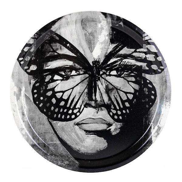 Denna vackra bricka från Carolina Gynning kombinerar stilren design med funktionell användning. Dekorerad med det konstnärliga Golden Butterfly-motivet i nyanser av svartvitt blir den en tidlös detalj i hemmet.