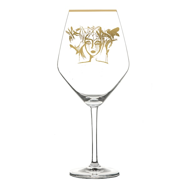 I Carolina Gynnings serie ingår glas för olika tillfällen samt en vacker karaff och alla med en signatur av Carolina. Motiven är frilagda från hennes populära konstverk som speglar kvinnor hon mött eller som lever inom henne. Alla verk är namngivna, vilket vittnar om Carolinas personliga engagemang i målningarna. Hon använder sina egna glas med enkelt vitt porslin som gärna har en fyrkantig form. ”Mina glas sticker ut lite grann i sin design, och då är ett vitt porslin perfekt att matcha med.” Glasen gör sig perfekt till bjudningar eller till vardags, och kommer bli en stor favorit. Perfekta presenten att köpa till studenten, födelsedagen eller andra stora tillfällen.