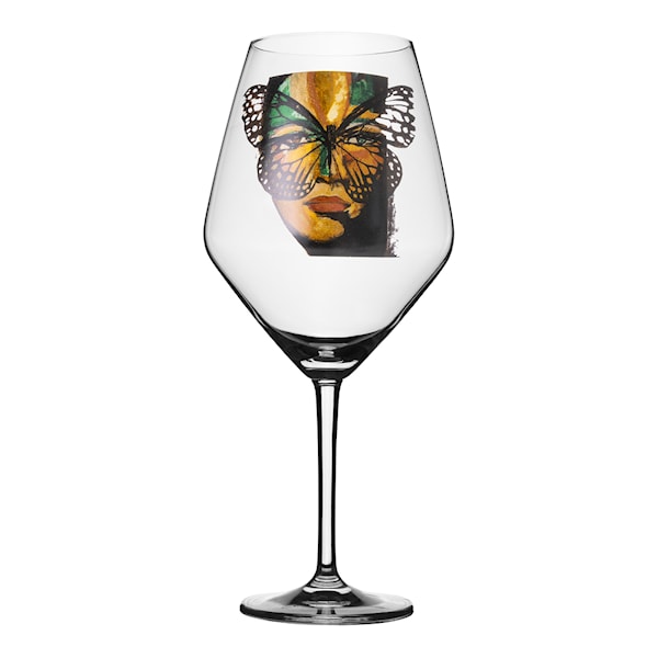 Carolina Gynning hämtar sina motiv från sina populära konstverk, där varje bild symboliserar starka kvinnor och personlig kraft. Hennes glas är skapade för att sticka ut – och de gör sig lika vackra till vitt porslin som till festens glittrande dukning. Vinglas Golden Butterfly är också en uppskattad present till födelsedag, student eller andra högtider.