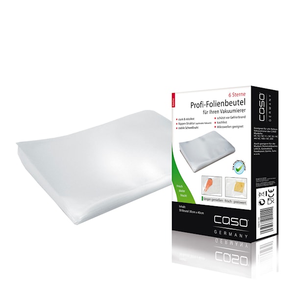Vakuumpåsarna passar Caso modeller: : VC10, VC12, VC100, VC120, VC200, VC220, VC 300 Pro, VC320 Pro, FastVac 3000, FastVac 4000. Går även bra till märken: Rommelsbacher, LAICA, Gastroback, Foodsaver, Genio, Solis.