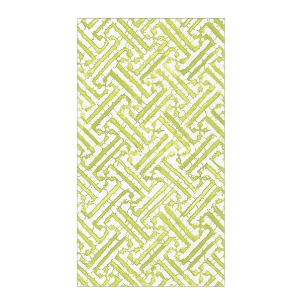 Caspari Fretwork servett 32,5x40 cm 15-pack grön/vit erbjuder en avlång storlek som är perfekt för bufféer och ger en flott och modern dukning när den placeras bredvid tallriken. Dessa högkvalitativa 3-lags pappersservetter från Caspari är utformade för att imponera.