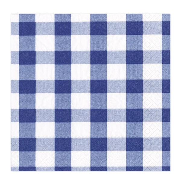 Caspari Gingham servett 33x33 cm 20-pack blå/vit erbjuder hög kvalitet i färgtryck och består av 3-lags pappersservetter. Dessa servetter från Caspari förhöjer dukningen både till vardag och fest.