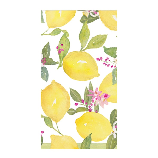 Caspari Limoncello servett 32,5x40 cm 15-pack gul/vit/grön erbjuder en avlång storlek som är perfekt för bufféer och ger en flott och modern dukning när den placeras bredvid tallriken. Dessa högkvalitativa 3-lags pappersservetter från Caspari är utformade för att imponera.
